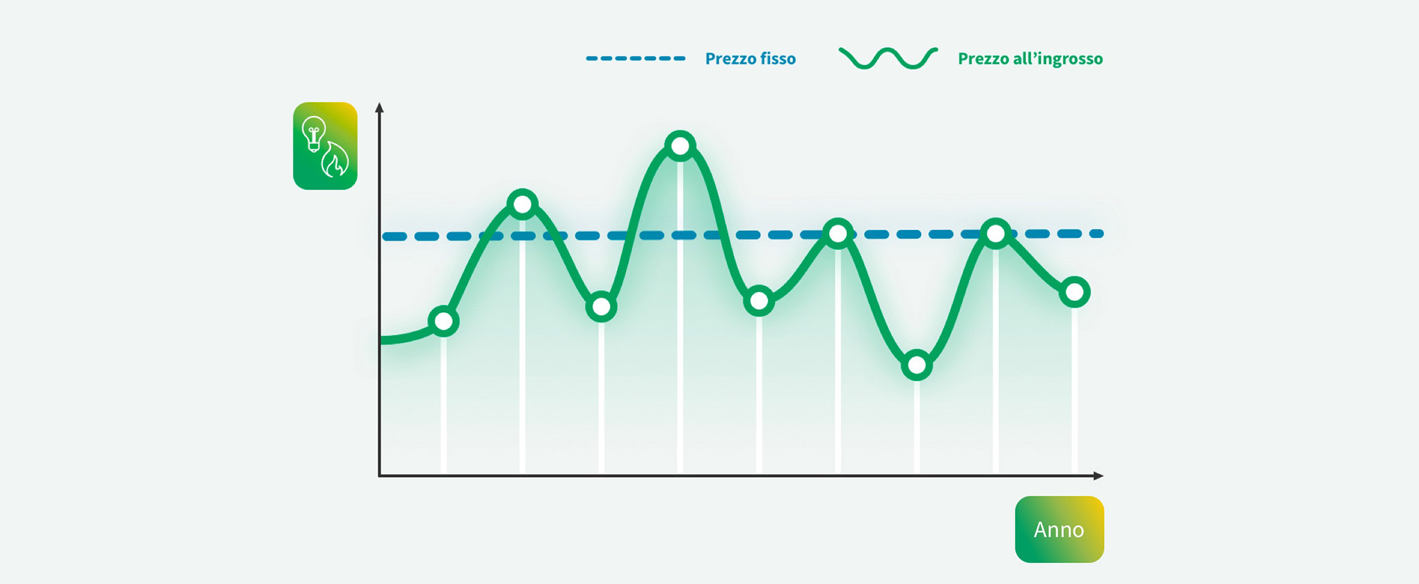 Il grafico è puramente indicativo dell’andamento variabile del prezzo dell’energia e del gas e non rappresenta il futuro andamento del mercato.